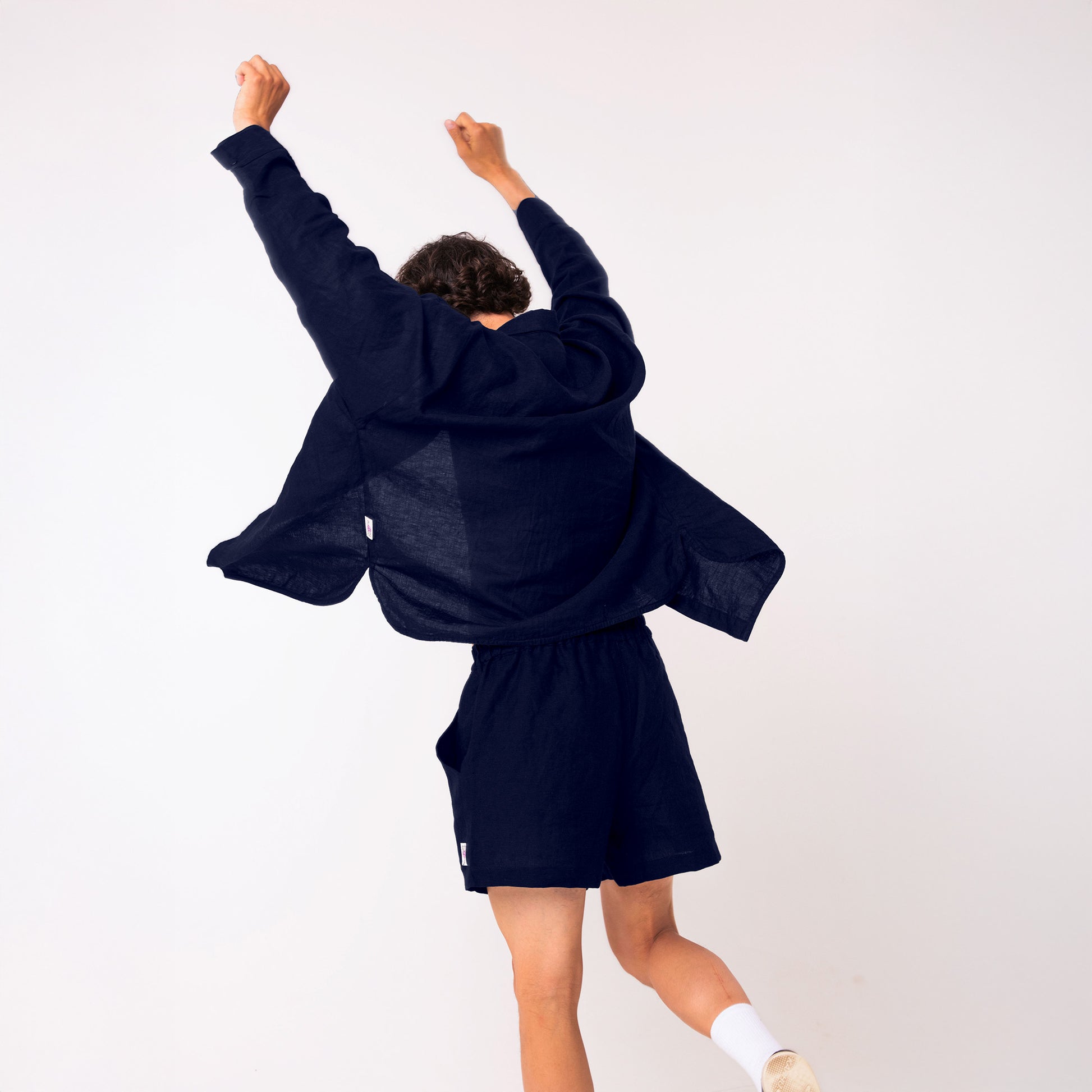 Solid blue linen shirt! Dark blue linen shirt made of 100% linen easy to style and match with other clothes.