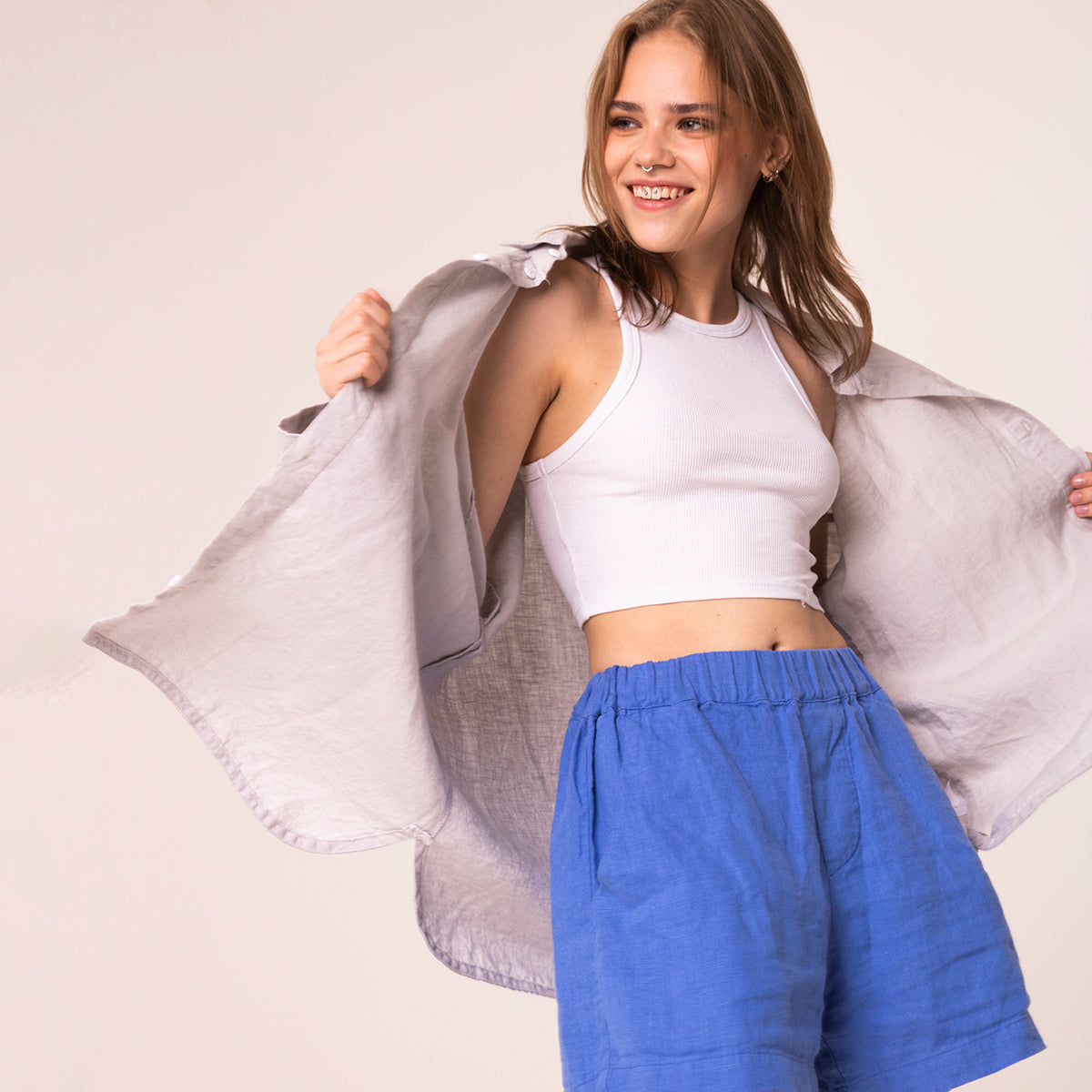 Colorful and bright 100% unisex linen shorts. Fits both perfectly - men and women. Soft and comfy perfectly fits your linen shirt!